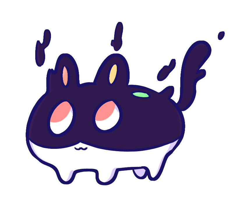 Nini (pronounced Knee-Knee/にに) is not a normal cat and is composed of an ink-like substance with multicolored patches on her back and her ears. Despite this, she acts like a normal cat.